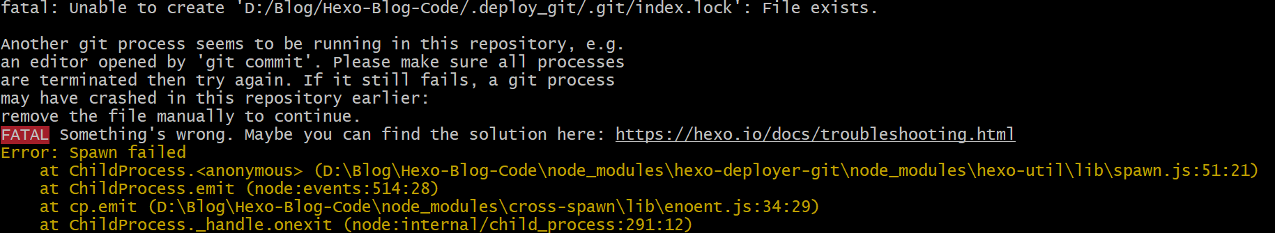 删除报错信息对应路径下已存在的 index.lock 文件即可。